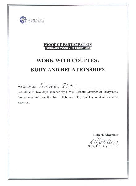 - Міжособистісні стосунки, сімейні конфлікти, робота з парами (психологічна та сексуальна дисгармонія)