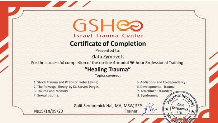 Окрім консультаційної діяльності, Злата — провідна тренерка у терапевтичних тренінгах та навчальних програмах, а також проводить супервізії для фахівців.